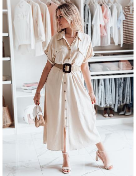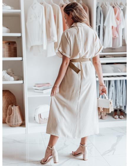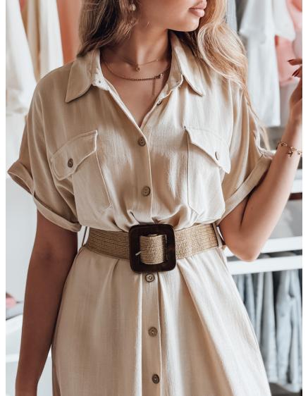 Košeľové šaty s opaskom maxi ARMINA béžové