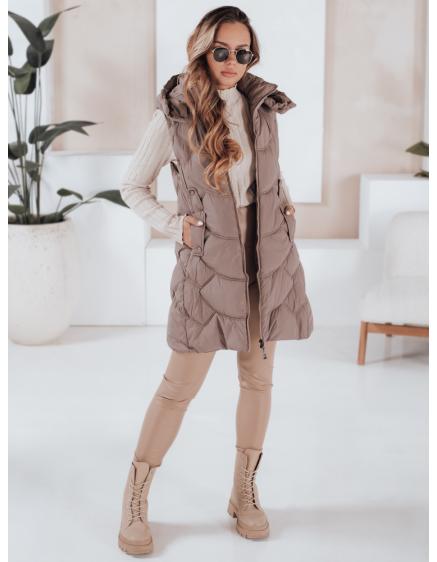 Dámska prešívaná dlhá bunda s kapucňou COSYVIVA béžová