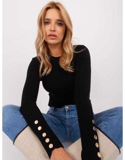 Dámsky sveter s gombíkovými rukávmi BROCKA čierna