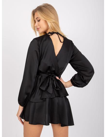 Dámske šaty s volánikmi a potlačou mini KAELIN čierno-oranžové