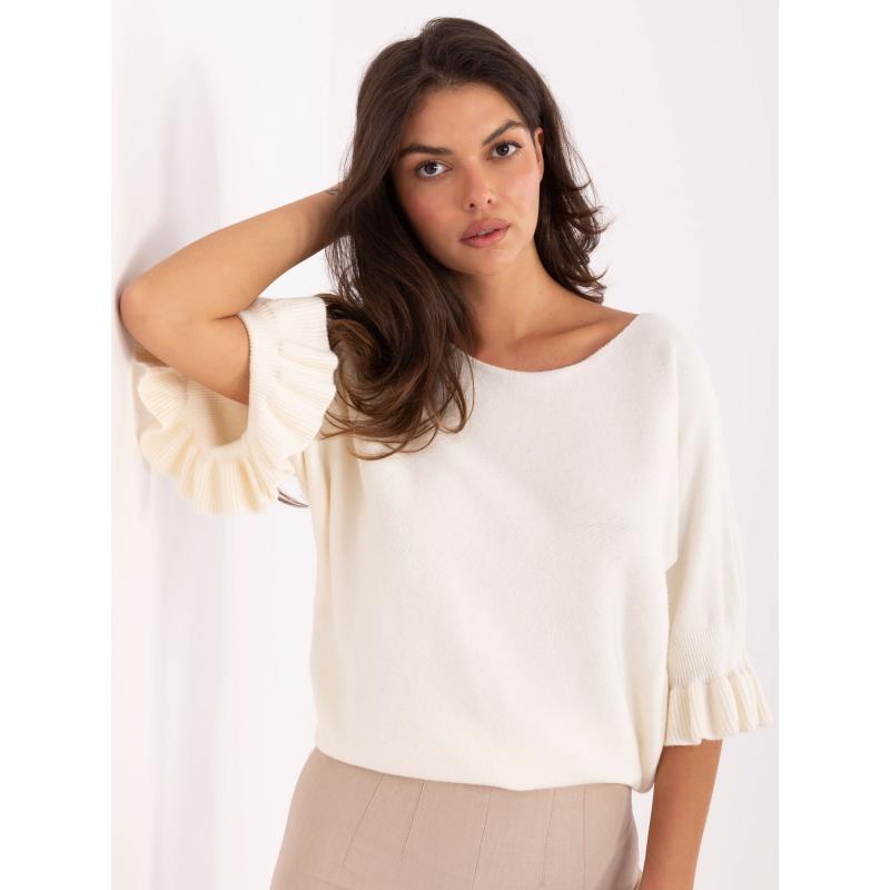 Dámsky ležérny sveter nadrozmernej veľkosti s 3/4 rukávmi Ecru